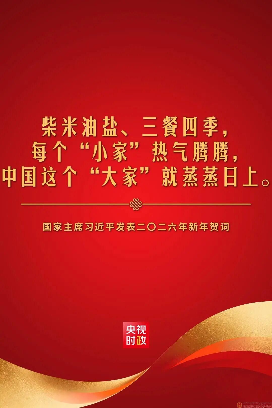 新年前夕,国家主席习近平通过中央广播电视总台和互联网,发表了二〇二六年新年贺词。